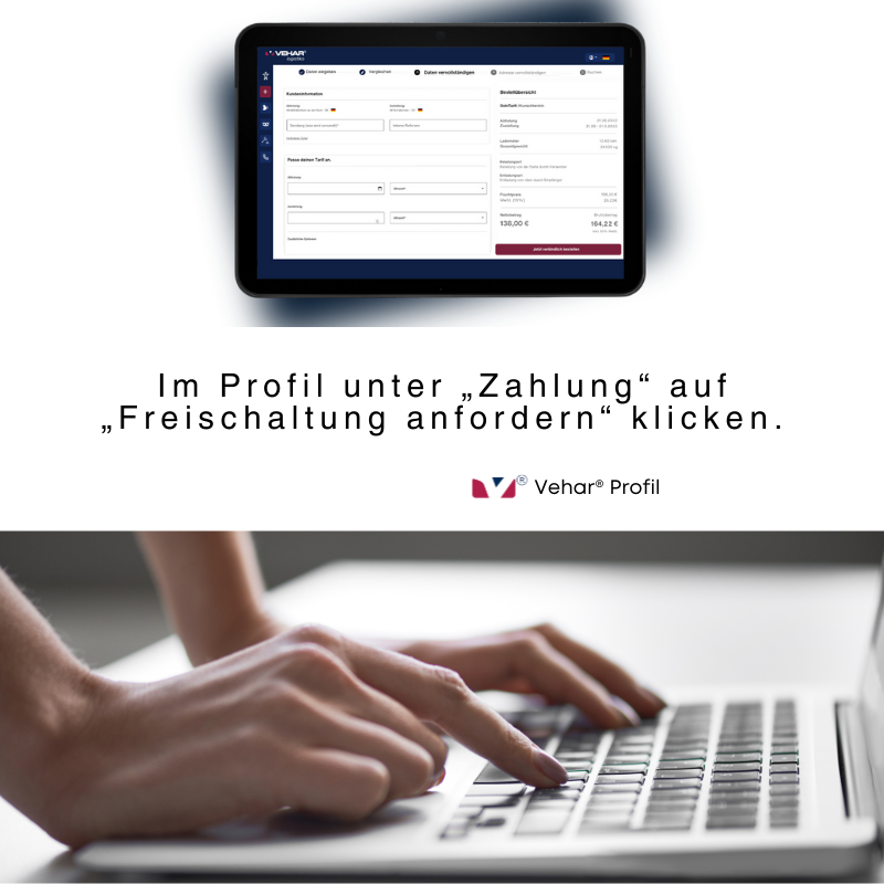 Berechne deine Frachtkosten für den Straßengüterverkehr in Europa einfach und schnell mit dem Vehar Frachtkostenrechner. In deinem Profil wickelst du die Zahlung flexibel ab – ob Rechnungskauf, Kreditkarte oder Vorkasse, alles direkt und digital in der App. So behältst du jederzeit die volle Kontrolle über deine Kosten, ohne auf ein Angebot warten zu müssen.