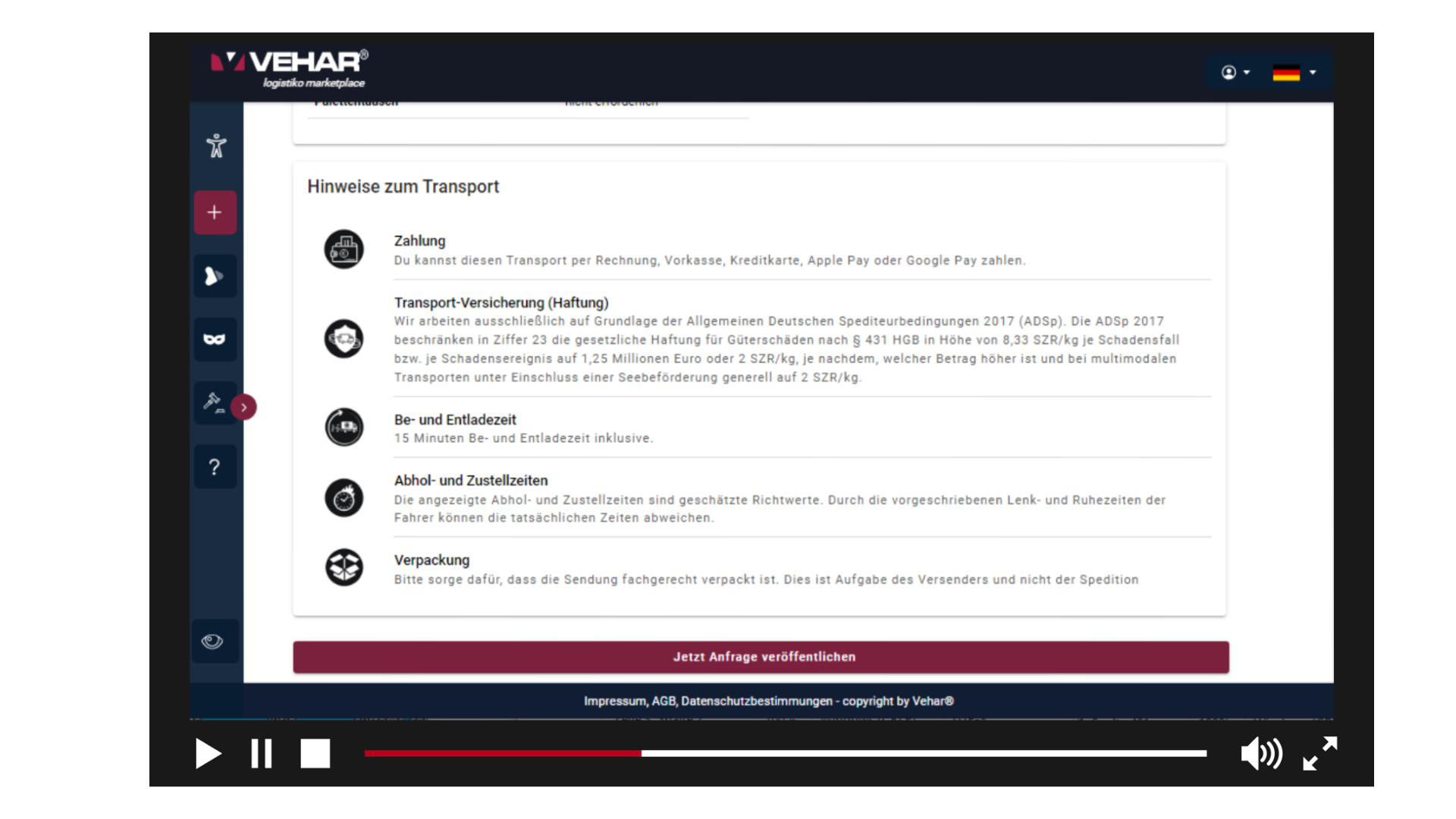 Erstelle in wenigen Klicks deinen Auftrag, optimiere deine Kosten und verwalte alles bequem und zentral über die Vehar App.