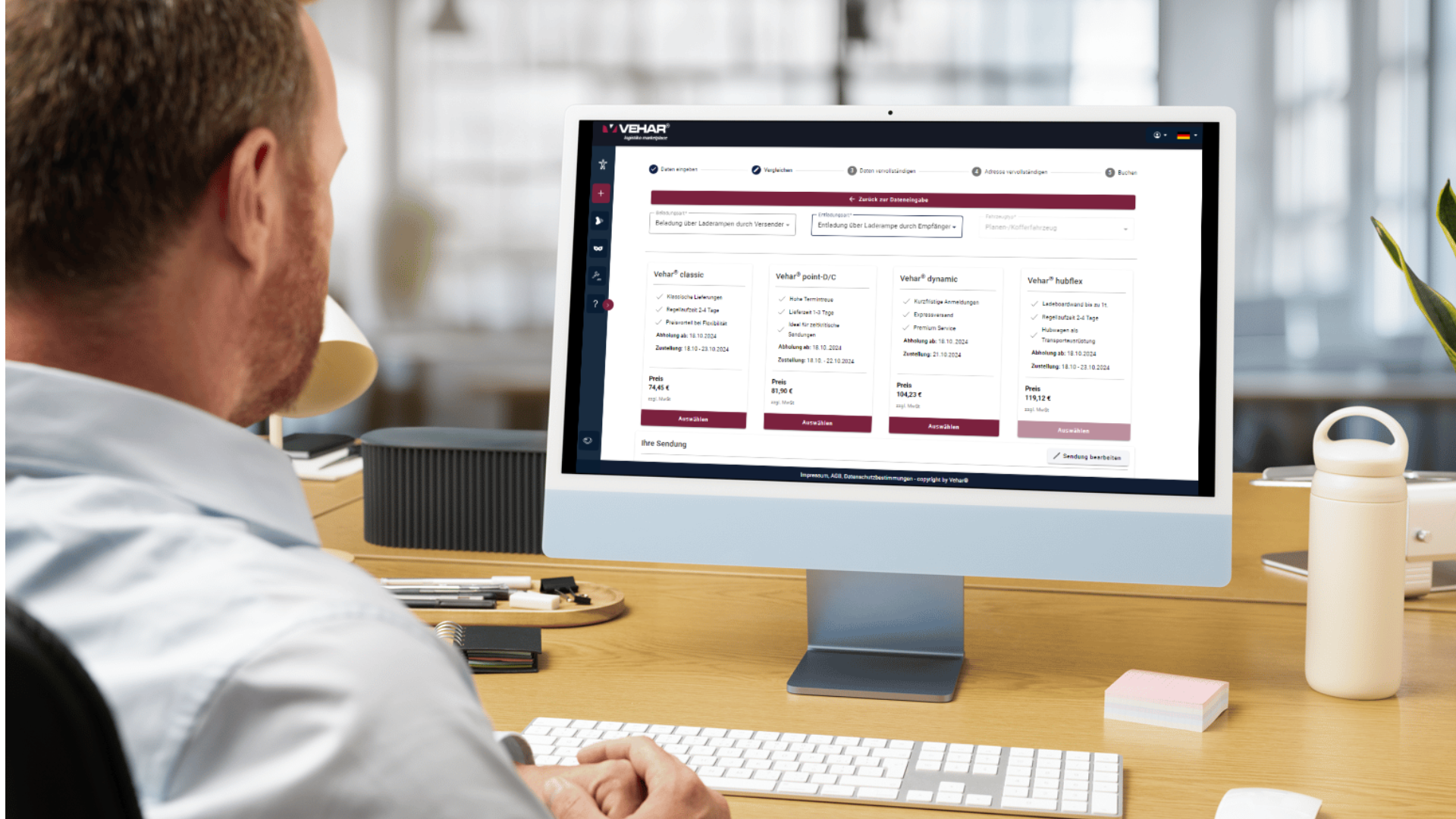 Spedition online buchen und sofortige Preistransparenz genießen: Mit Vehar direct planst du deinen Transport effizient und sparst dabei Zeit und Geld.