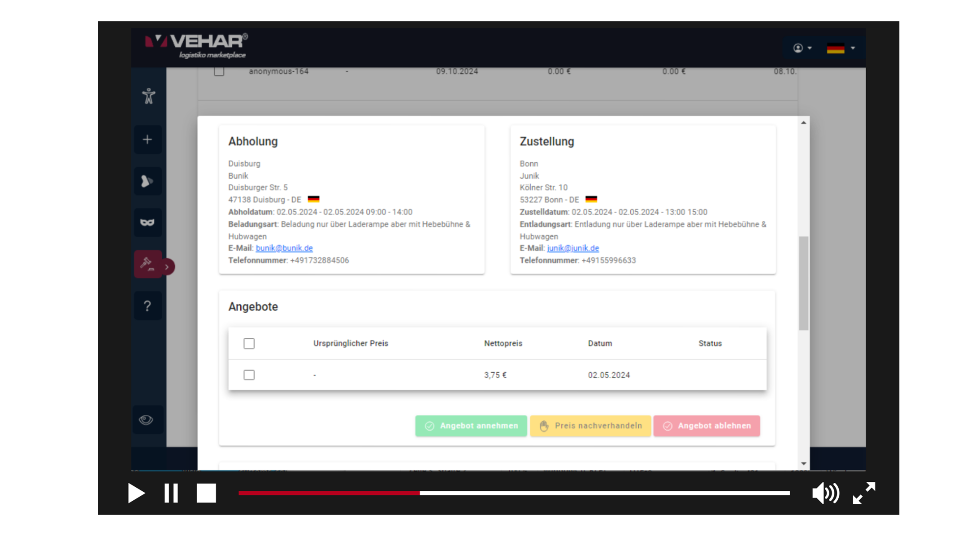 🚚 Vehar anonymous – Anonyme Anfrage erstellen